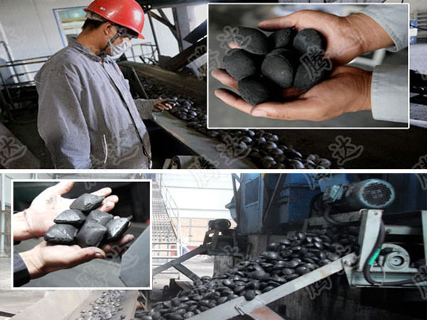 原料大塊煤塊經(jīng)過立式粉碎機粉碎到成型所需粒度后(一般為5mm以下,5mm以下可忽略此過程),由皮帶輸送機輸送至雙軸臥式攪拌機內,與粘合劑攪拌桶中的液化粘合劑進行充分的均勻攪拌,攪拌好物料將由皮帶輸送機送入型煤壓球機進行壓球成型。型煤壓球機壓輥可訂做,用戶可根據(jù)自己的需求訂做合適的形狀和大小尺寸。從型煤壓球機中出來的成品濕球由皮帶輸送機輸送至網(wǎng)帶烘干機或立式烘干機進行烘干。我公司的烘干機可將濕球烘干成含水量≤3%的干球。