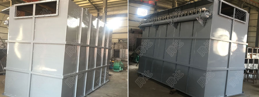 1、進(jìn)風(fēng)口和出風(fēng)口制成一體,采用斜隔板分隔,氣流分布均勻,對含塵氣體起到預(yù)收塵和阻火星的作用,避免了粉塵直接沖刷布袋,降低了含塵氣體的粉塵濃度,延長了濾袋與脈沖閥的壽命。