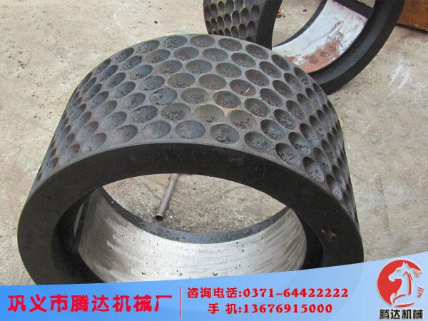 壓球機(jī)輥皮是壓球機(jī)型煤設(shè)備中必不可少的一個(gè)重要構(gòu)件,壓球機(jī)輥皮決定了壓球機(jī)壓制成型的形狀,壓球機(jī)輥皮是包括在壓球機(jī)輥芯外部的一層表層挖有球窩的圓筒形狀的構(gòu)件。根據(jù)裝配方式的不同分為一體式和分裝式。