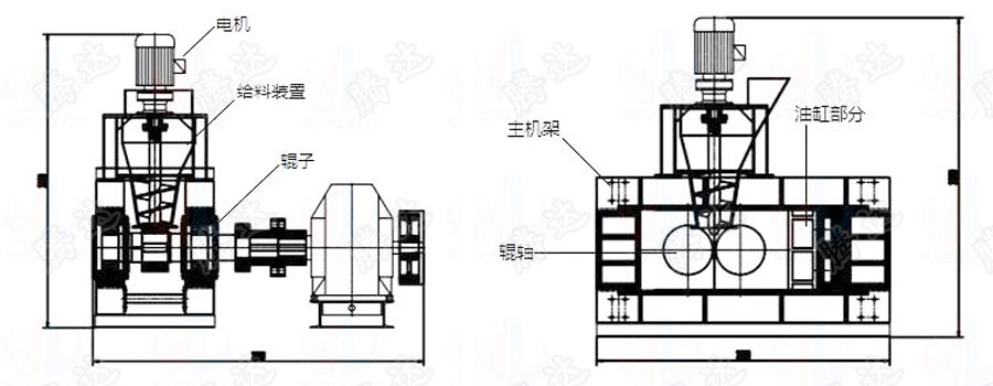 型 號(hào) | 輥徑(mm) | 輥寬(mm) | 總壓力(t) | 最大線比壓(t) | 主電機(jī)功 率(kw) | 產(chǎn)量(t) | 重量(t) | 外形尺寸(mm) | |||